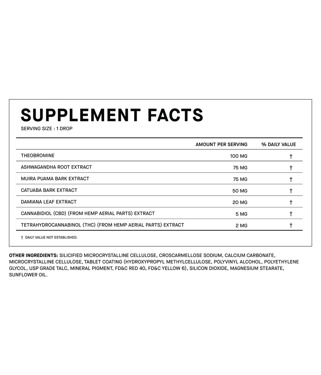 | THC: 10mg | CBD: 25mg Total - 5 Pills Per Pouch THC: 50mg | CBD: 125mg Total - 25 Pills Per Tin | THC/Serving: 5mg | CBG/Serving: 10mg